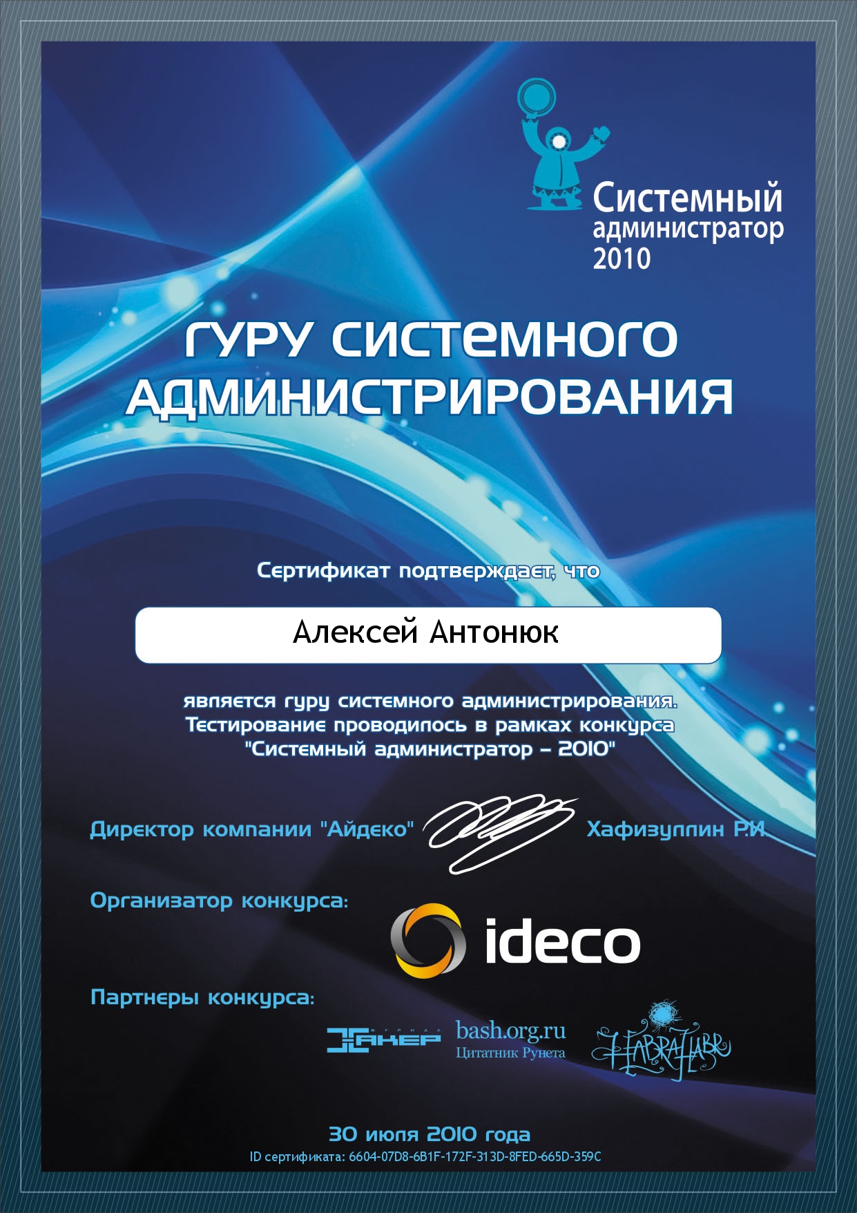 Самый системный администратор - 2009. Настоящий системный администриратор